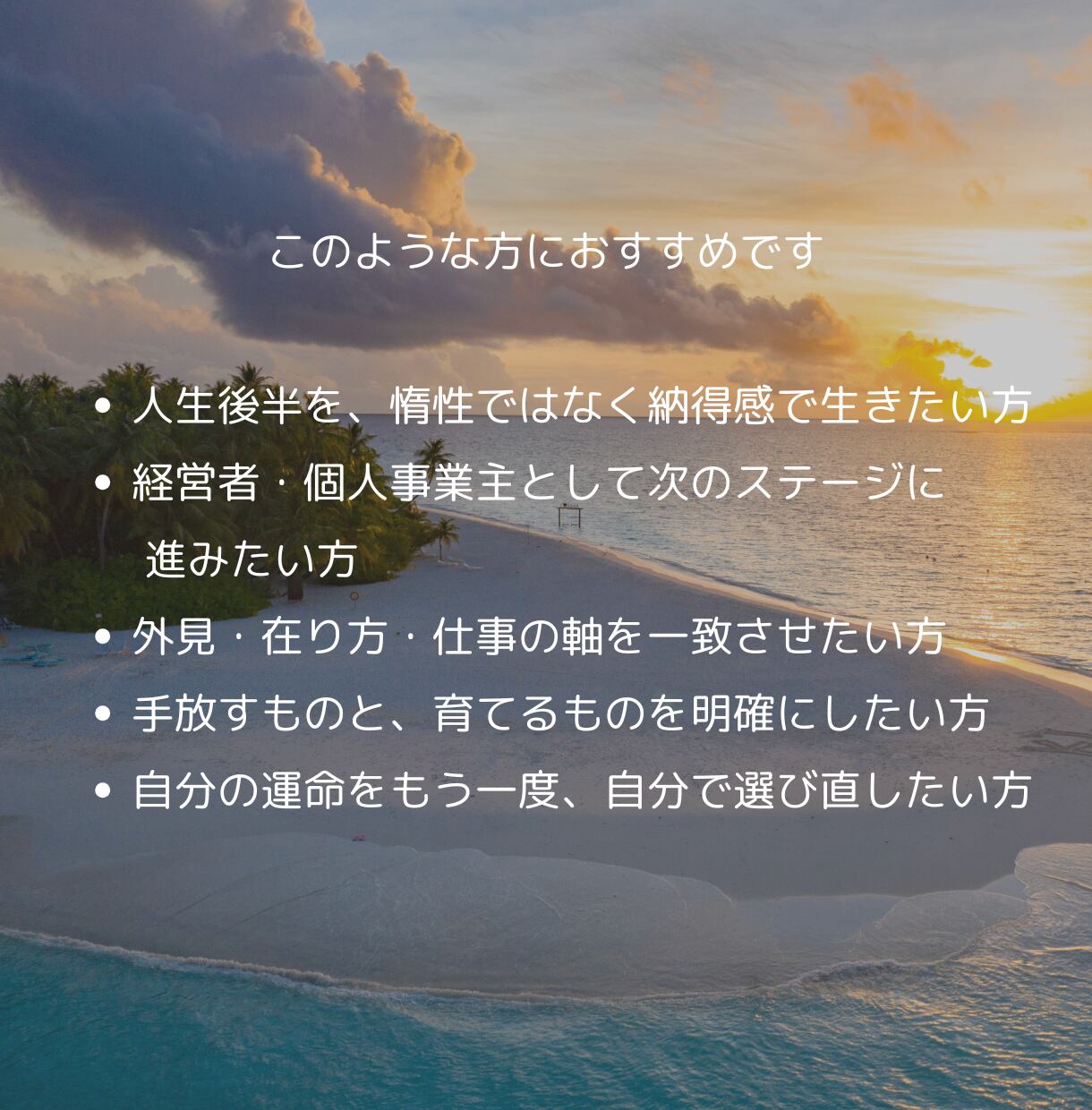 あなたがこれまで培ってきたものを、無理なく、美しく、次のステージへつなぐために。
